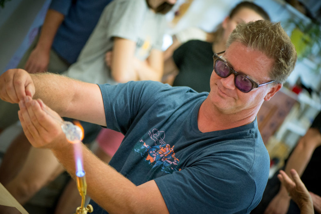 Our glass flameworking classes are designed to offer a window into the magical world of melting and shaping glass. We teach the basics of the craft in 90-minute introductory workshops for small groups. Our goal is to provide our customers with a unique and memorable experience.